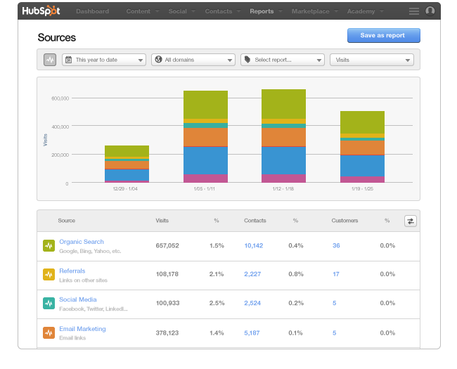 Use your marketing data to make smart marketing decisions. HubSpot’s Analytics gives you the metrics you need to understand the performance of your important marketing channels.