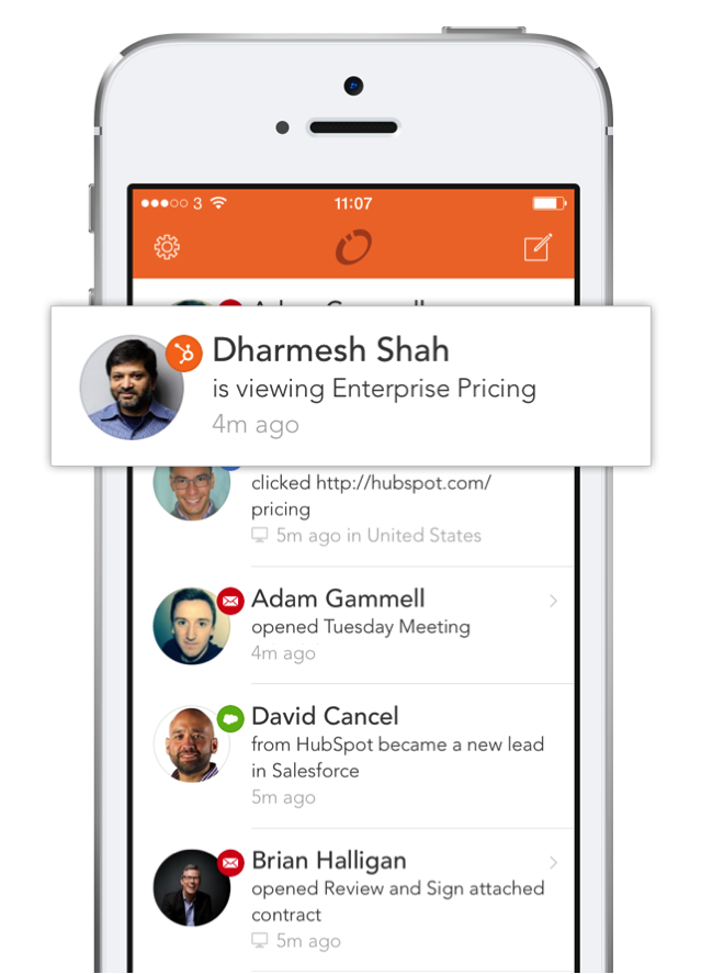 Today, the Signals team at HubSpot launched the Signals mobile app for iOS, making the selling experience easier for sales people and the buying experience better for customers. The app tracks email engagement with prospects, leads, and customers, notifying sales reps when a prospect opens their email message, clicks on a link embedded in an email, or revisits a pricing page, providing the context a sales person needs to invest his or her time in highly engaged leads without being stuck by the phone all day.