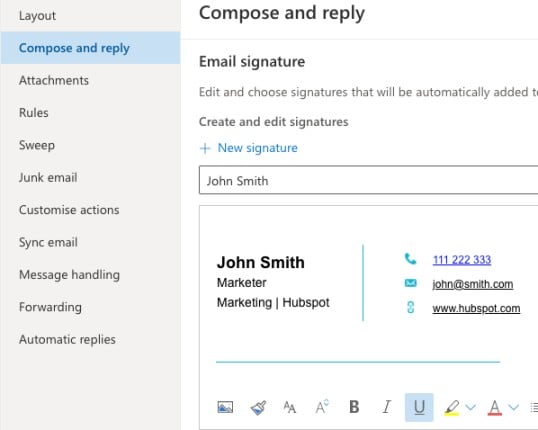 HubSpot’s Email Signature Generator makes creating a customized Outlook email signature easy. Our email signature maker generates customized, mobile-responsive signatures in minutes that work perfectly across all Outlook platforms. Create your signature using our free tool, then follow the platform-specific installation steps above.