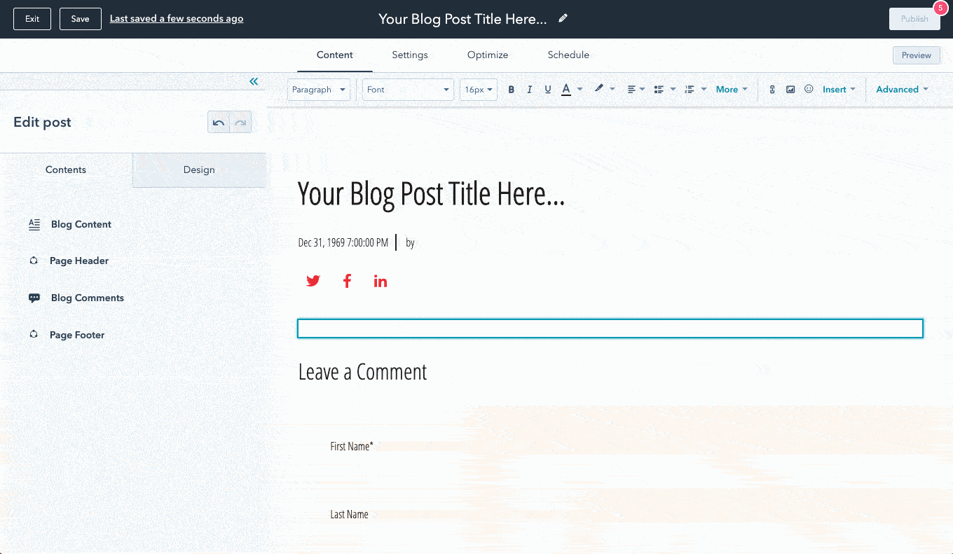 Although you could write your content directly into the blog tool, we know that many of you choose to draft your content in Google Docs, then pull it into HubSpot when you're ready. When you do this, the experience should be quick & easy, and the blog post should look the same in HubSpot as it did in your Google Doc.