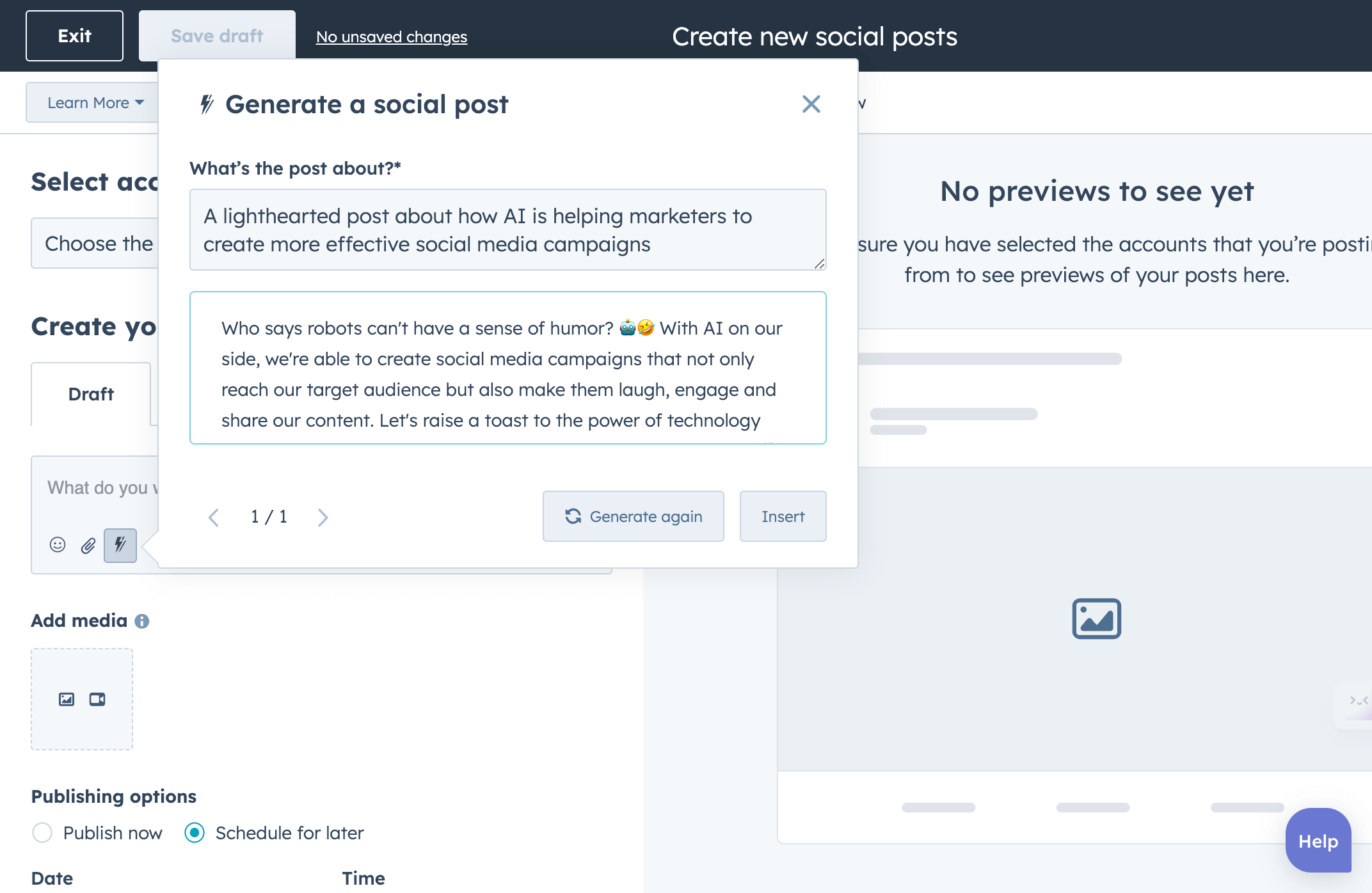 For consistent brand voice across all your content, use HubSpot's Brand Voice tool to define your company's tone and style guidelines. For even more advanced social media management, explore HubSpot's Social AI Agent for comprehensive automation capabilities.
